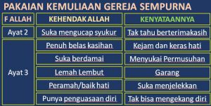 Oleh sebab itu, kenakanlah pakaian itu yaitu firman Allah sehingga kita masuk dalam pesta perjamuan yang Allah siapkan bagi kita yang memakai pakaian pesta.