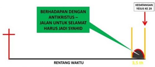 2). Bila tidak masuk Gereja Yang Sempurna artinya tidak turut disingkirkan ke padang gurun maka harus berhadapan dengan Antikristus dan harus menang melawannya, yaitu rela menjadi martir atau syahid Yesus. Perhatikan gambar untuk memperjelas pengertian kita.  Bahwa peristiwa itu terjadi dalam massa 3,5 tahun dimassa pemerintahan Antikris. Menjadi martir atau syahid Yesus adalah satu-satunya untuk diselamatkan, jika tidak disingkirkan.